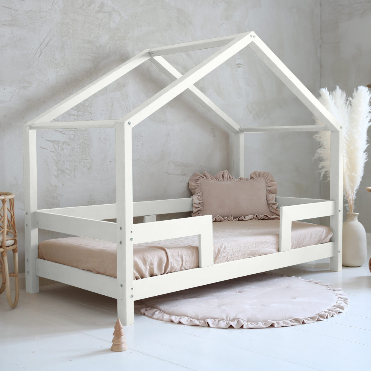 The Evie House Bed offers a clean, modern look with its straight rails and pitched front roof — perfect for families who love simplicity with a hint of structure. Fully enclosed on all sides, Evie’s solid design gives young children a secure first sleeping space that still feels light and open.