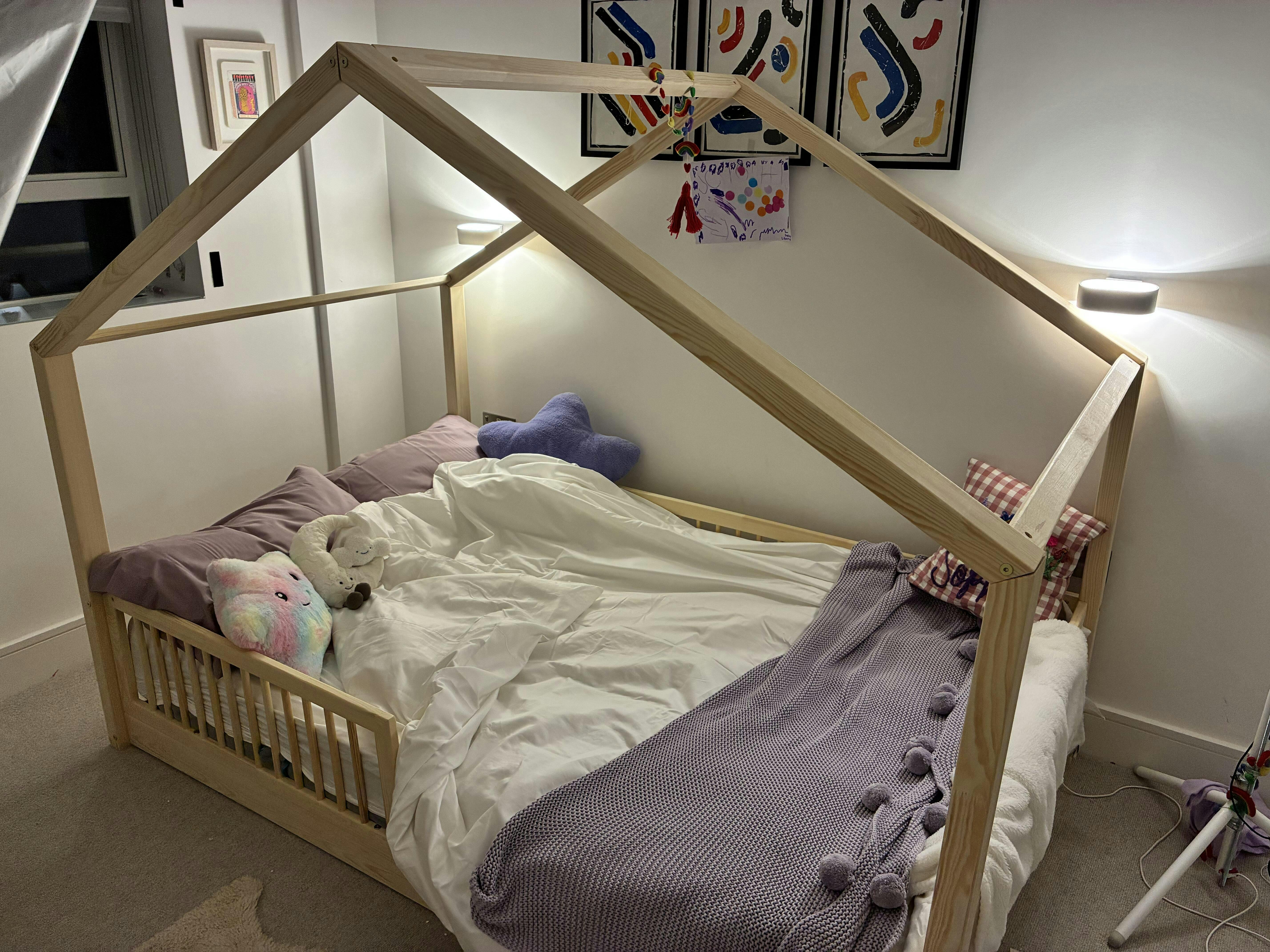 The Olivia House Bed brings a softer edge to our signature house bed style, with rounded slats and a front-facing pitched roof. It’s a gentle, calming design that fits beautifully in a minimalist or nature-inspired bedroom.